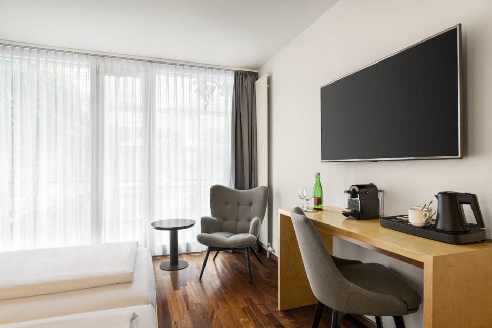 For business brainstorming sessions or elegant celebrations, Vienna House by Wyndham Dornbirn offers the ideal setting for successful events with its exclusive rooms. The four rooms, filled with natural light, each extend over 390 square meters of flexibly configurable space. These provide an outstanding backdrop for any special occasion. You will also receive first-class catering directly on site as well as other amenities such as free high-speed WiFi and state-of-the-art technological equipment. The excellent central location and the carefully furnished rooms and apartments guarantee your guests a pleasant and comfortable stay.